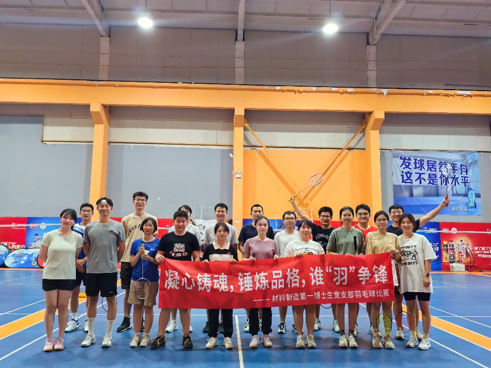 为让支部党员同志振奋精神状态,提升学习工作热情,加强支部凝聚力,深刻理解建设体育强国的丰富内涵,材料制造第一博士生党支部于2023年9月18日晚,成功举办了凝心铸魂,锤炼品格,谁羽争锋”羽毛球赛活动,为全体党员带来了一场竞技与友情并重的精彩盛事。